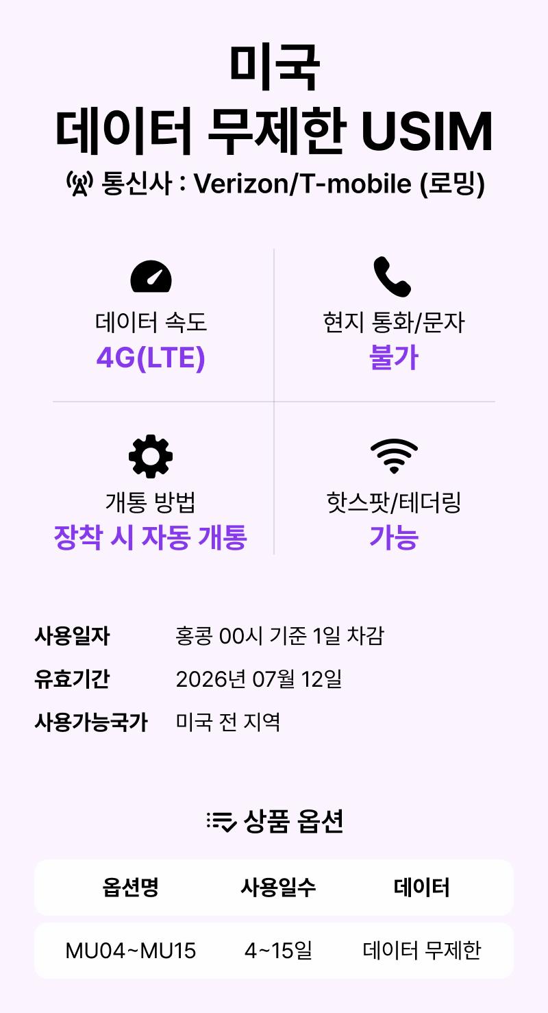 [미국/유심] 미국 데이터 전용 무제한 유심