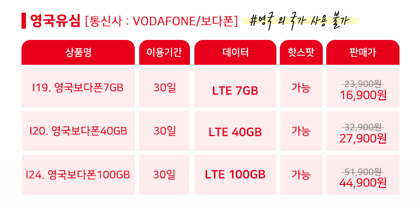 • [영국Vodafone전체상품/유심] 영국전용 유심