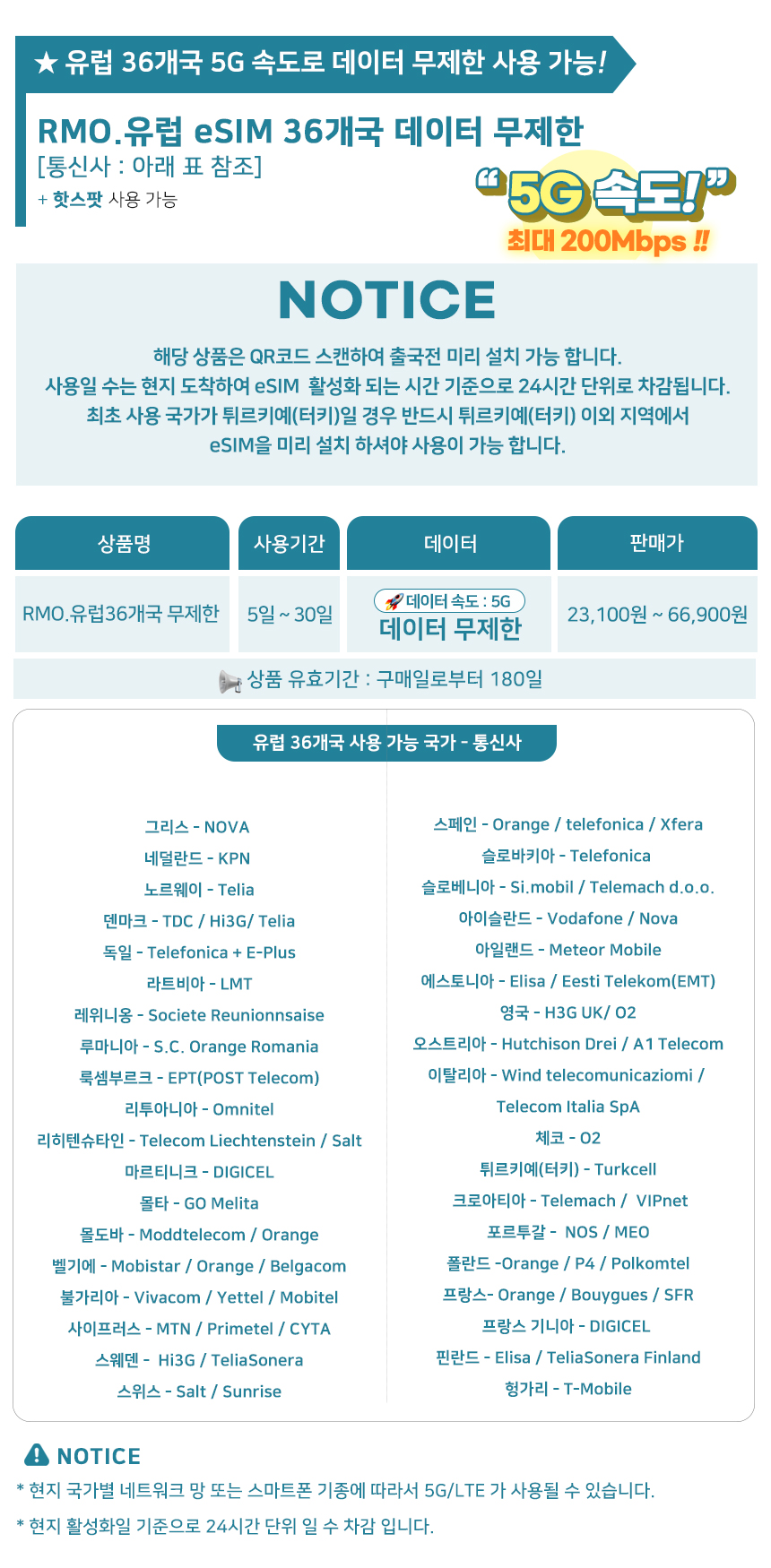 이미지 확대보기[유럽/esim] 유럽36개국 5G속도 데이터 무제한 esim. 영국,프랑스,이탈리아